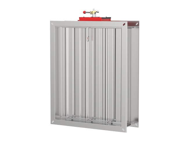 空調(diào)排風(fēng)管用通風(fēng)防火閥包括閥門架和閥板。閥板安裝在閥門架外側(cè)表面的頂部,閥板的表面固定安裝有熔斷桿,熔斷桿的一端固定安裝在閥門架的表面,閥門架的內(nèi)部安裝有固定裝置,用于在閥板密封的時(shí)候?qū)⑵滏i緊,閥板與閥門架的表面通過(guò)合頁(yè)進(jìn)行安裝,閥板與閥門架的表面垂直。